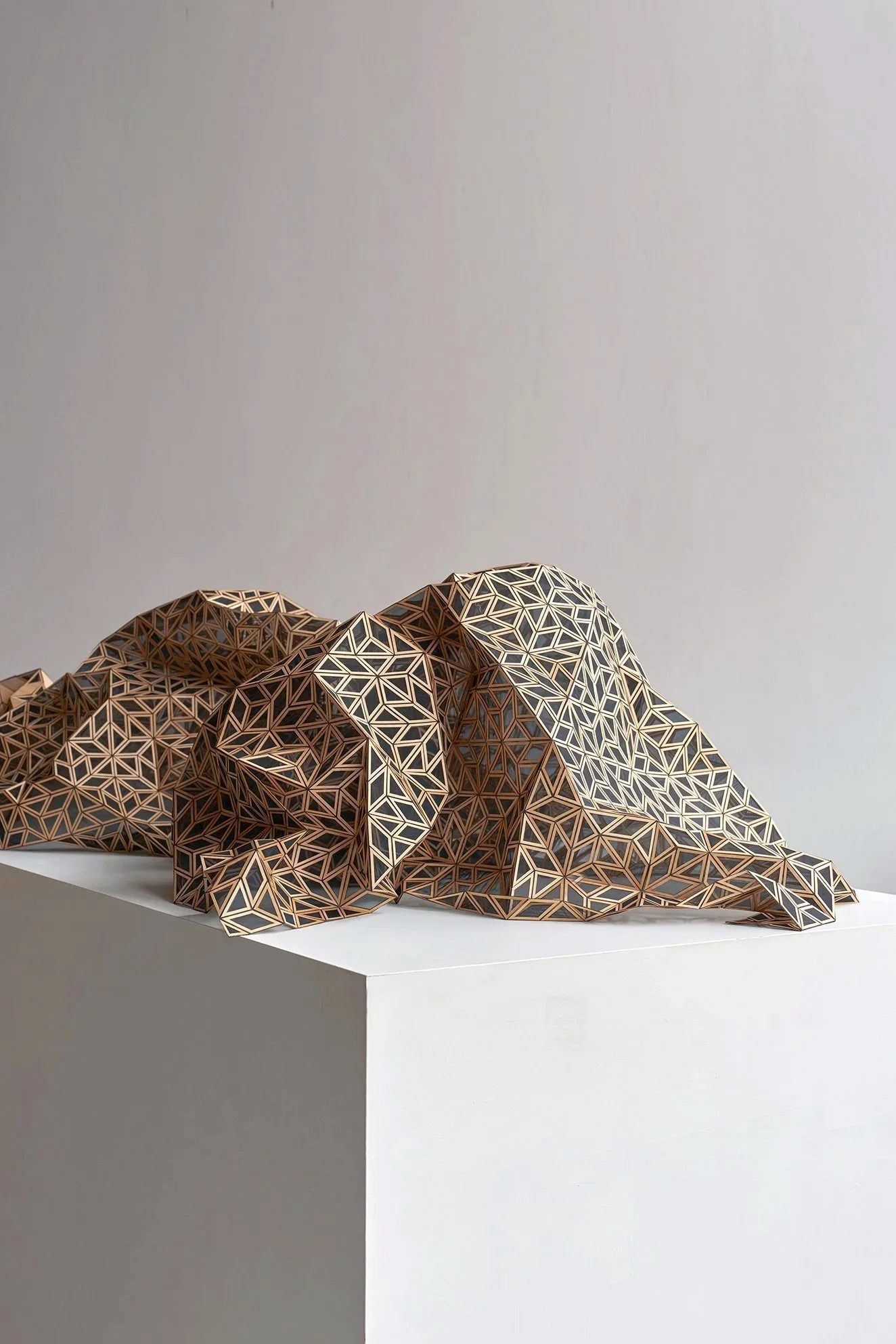The material can transform into a sculptural plaid, draped on a bed or sofa. Different designs and colours are available.
